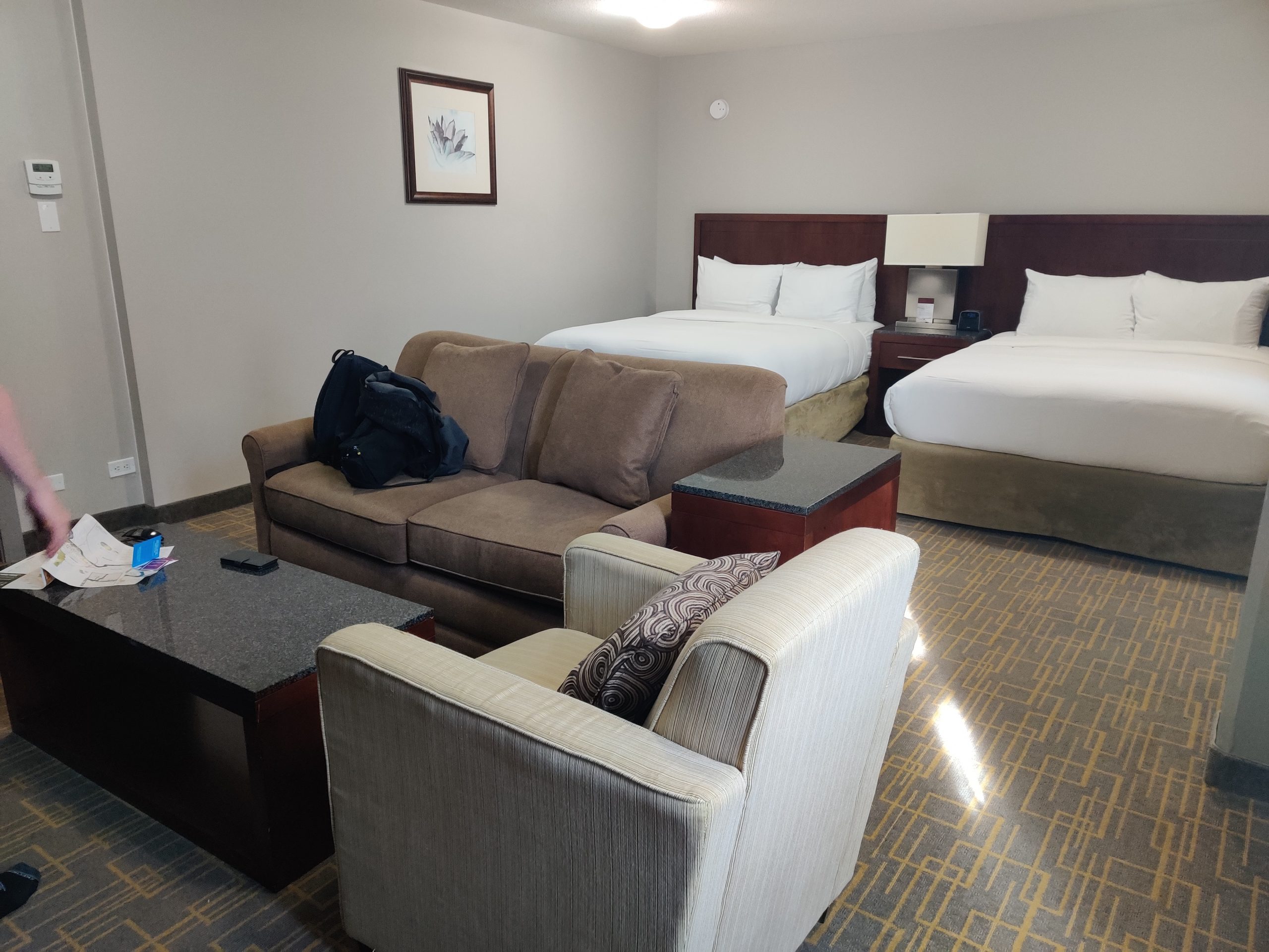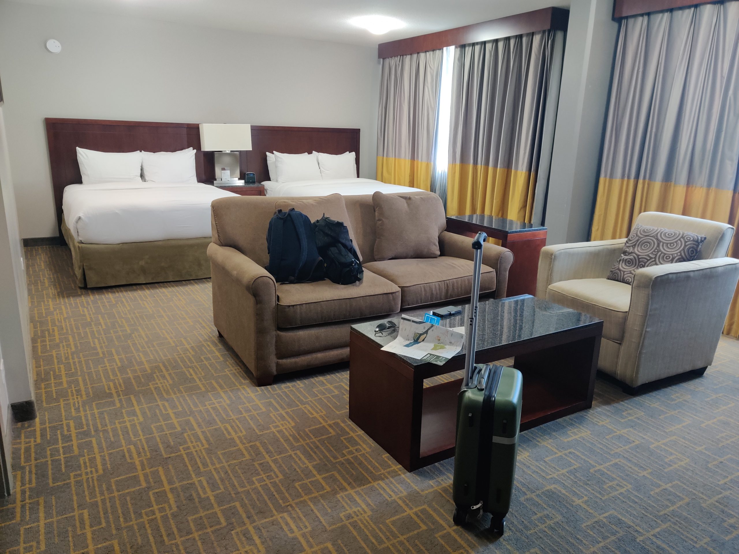 Elle nous a également informé que notre demande de surclassement avait été acceptée et, au lieu d’une chambre 2 lits queen , nous avons pu obtenir une suite avec 2 lits queen.