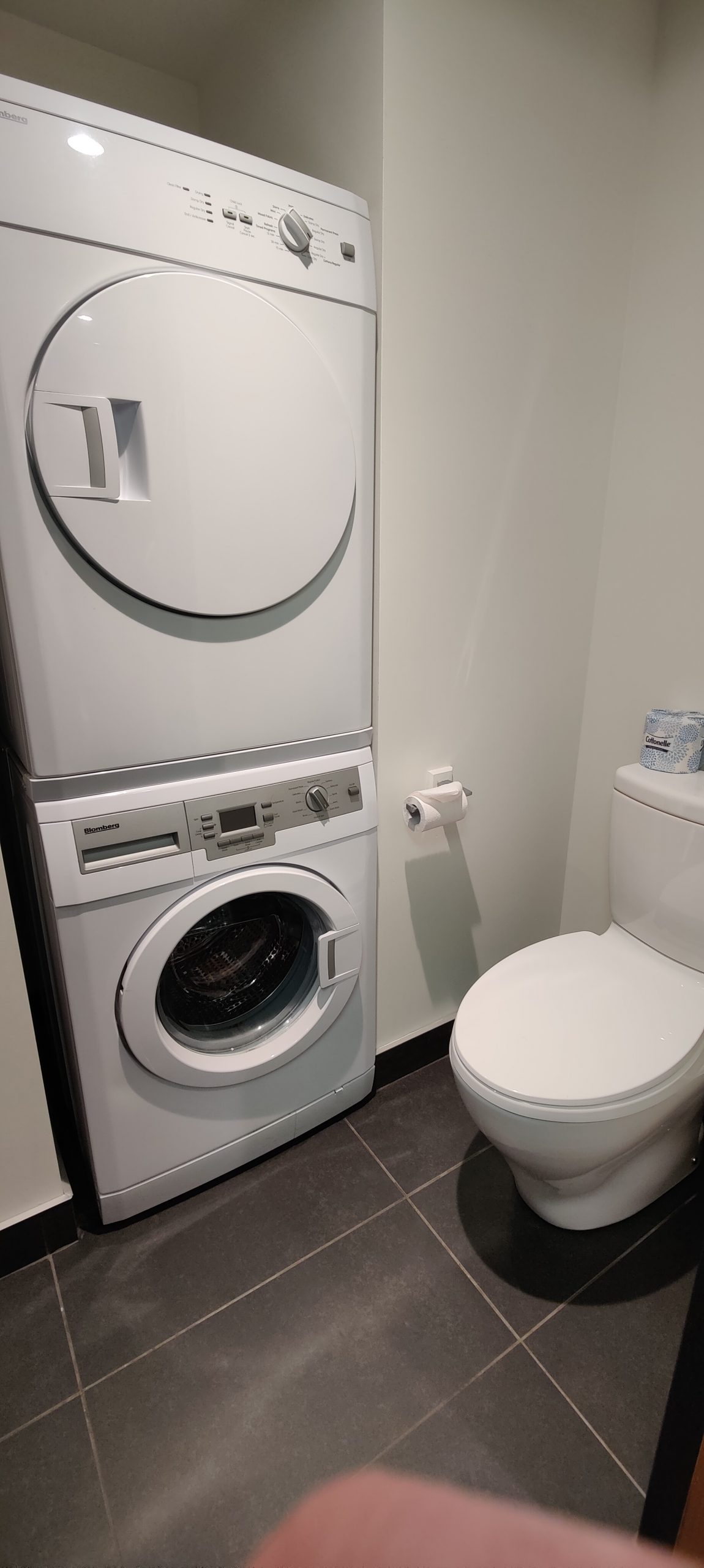 C’est dans la salle de bain que se trouve une très bonne surprise : La présence d’une laveuse ainsi que d’une sécheuse très modernes et de qualités. Un excellent point donc pour des longs voyages, afin de remettre toute la valise au propre. Il y avait même la présence du détergent.