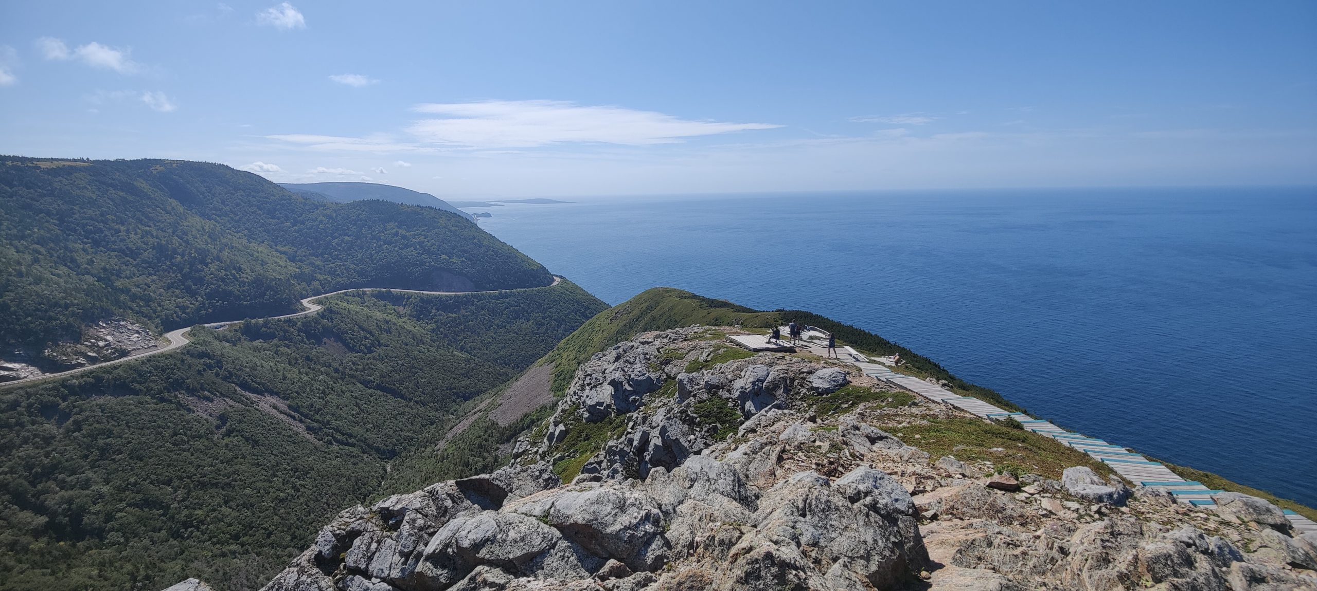 Pour cette deuxième journée, notre parcours nous conduit le long de la Cabot Trail, une route touristique légendaire, et c’est vraiment une expérience extraordinaire. Les panoramas à couper le souffle se multiplient tout au long du trajet, et la météo magnifique ne fait qu’embellir notre journée.