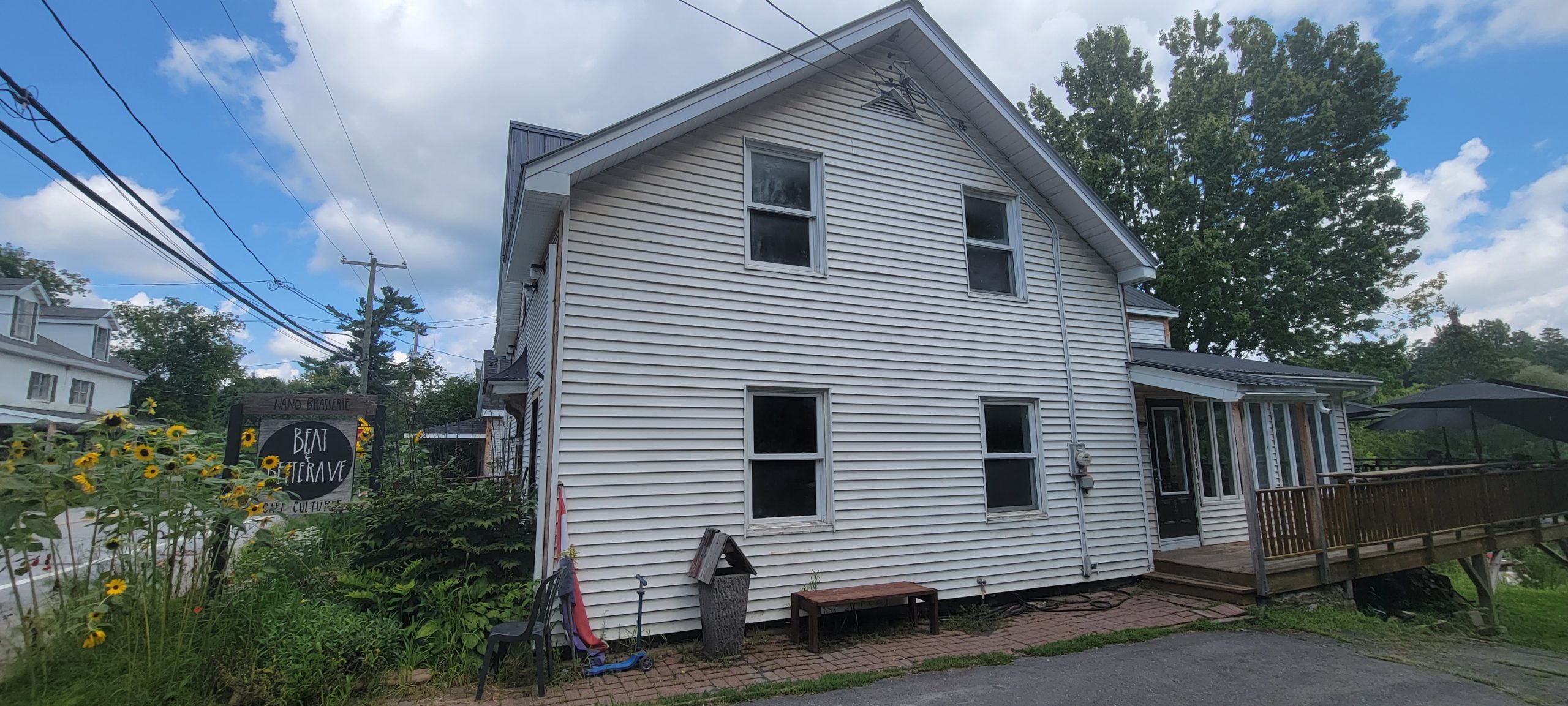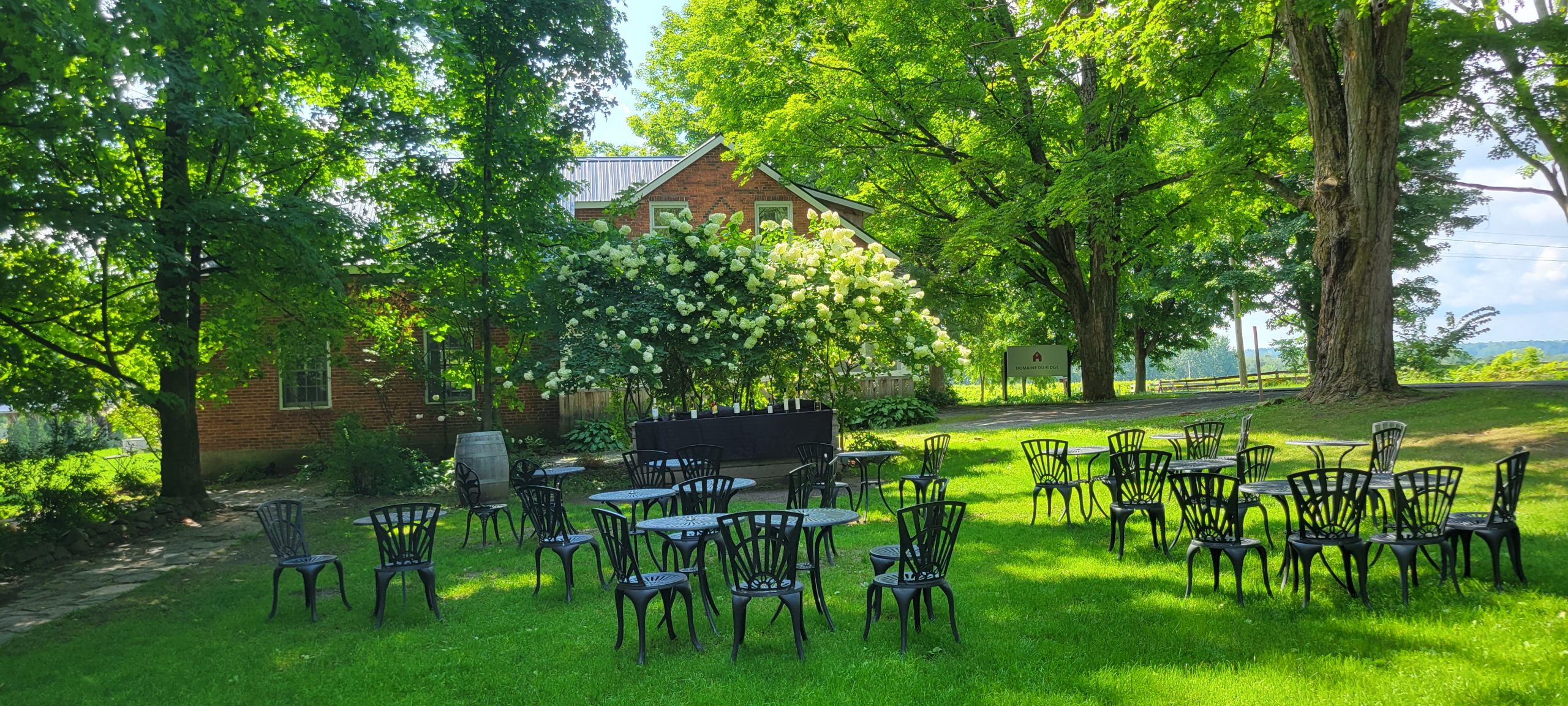 Il y a également des tables et des chaises afin de déguster avec une vue magnifique sur le Bac Brome et les montagnes.