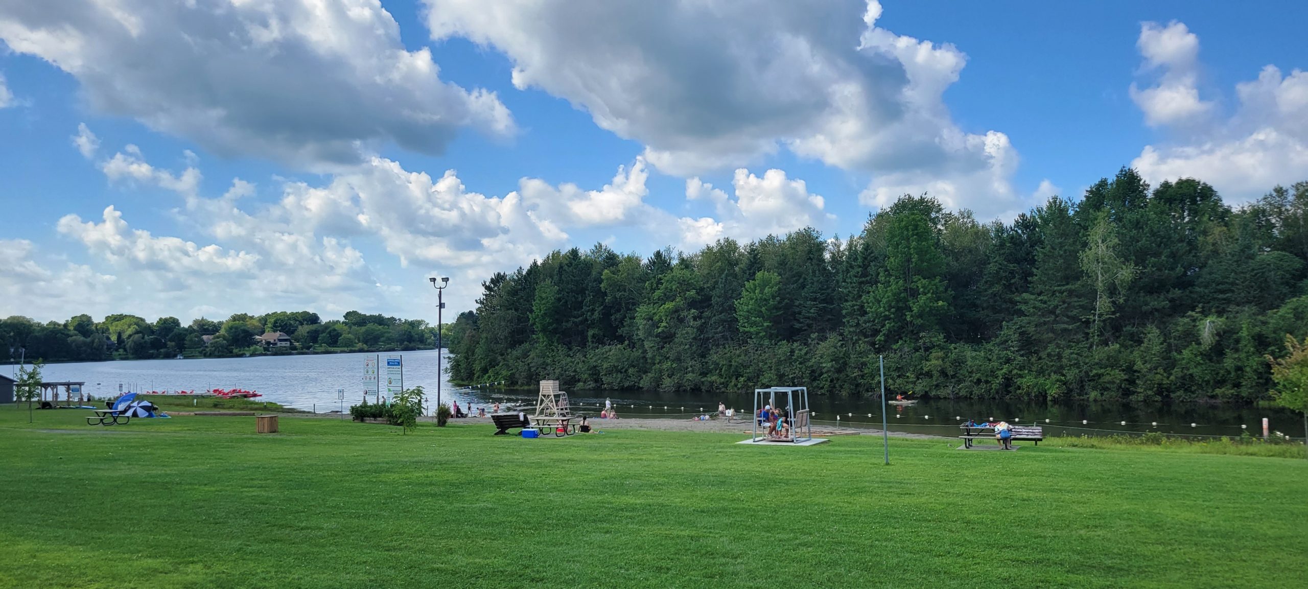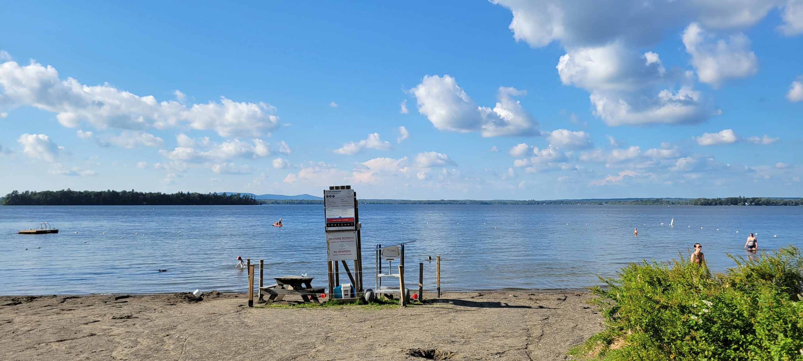 Situé tout près du village, je vais relaxer quelques instants à la plage Douglas qui permet de se baigner ou simplement se poser dans l’herbe ou sur le sable chaud.