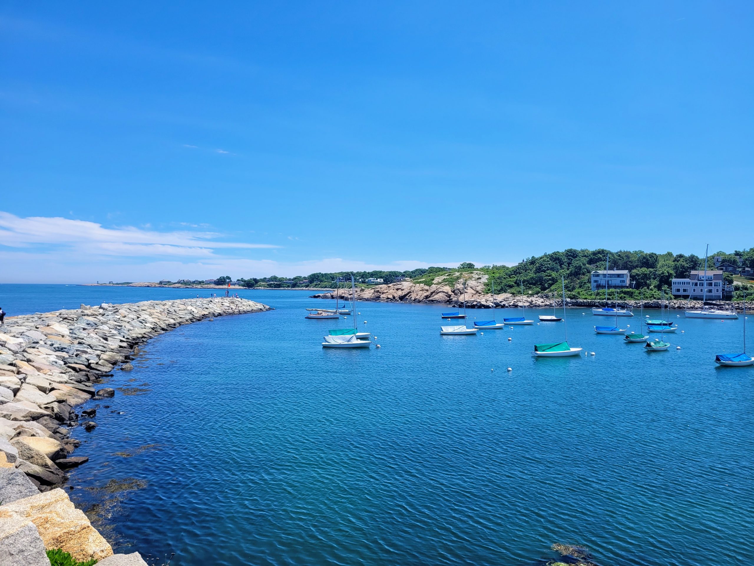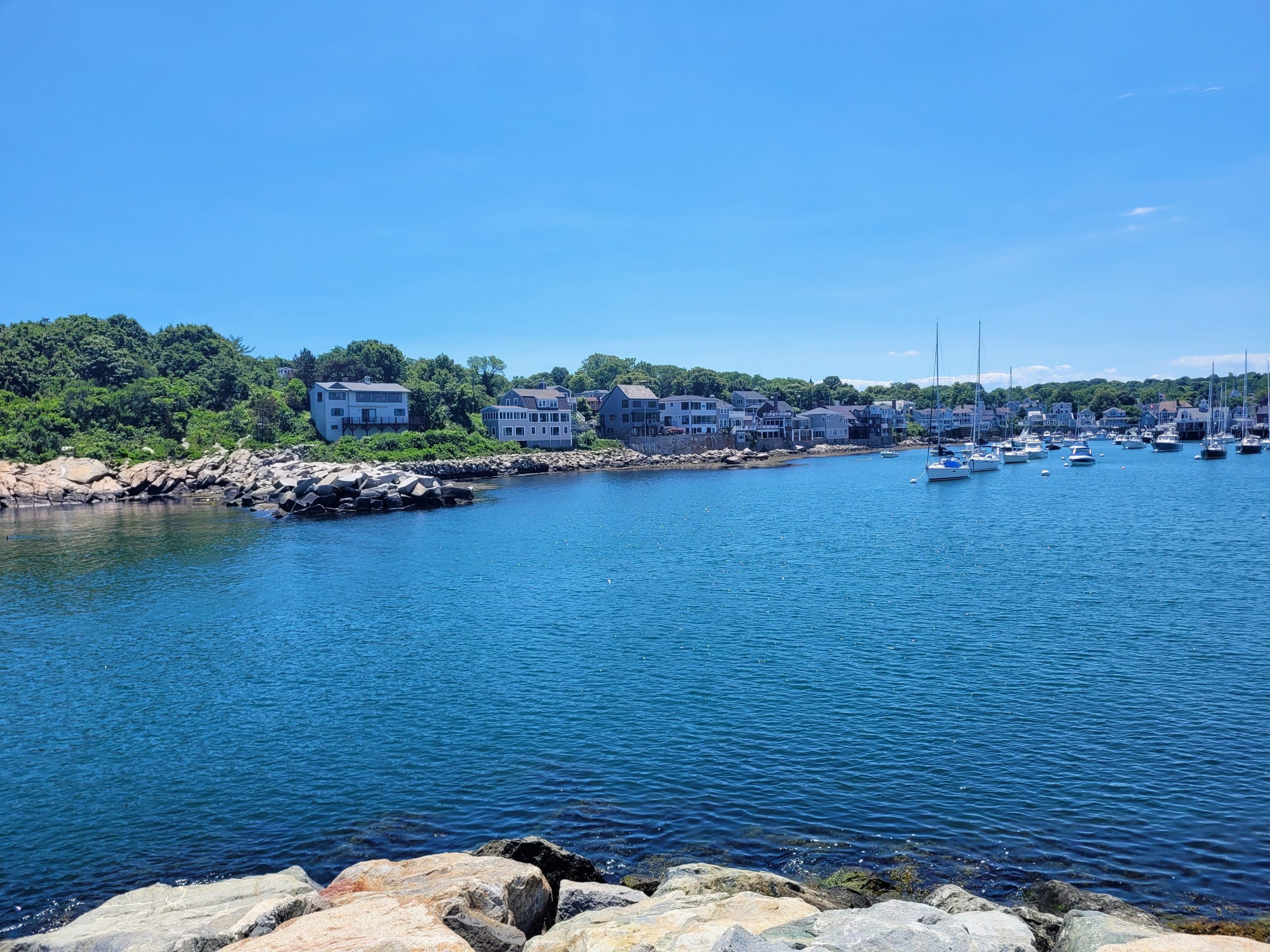 Notre première étape a été Cape Ann, qui abrite trois charmantes villes : Manchester-By-The-Sea, Gloucester et Rockport. Nous avons envisagé de visiter la plage « Singing Beach » à Manchester-By-The-Sea, mais le tarif d’entrée de 20 $ pour quelques minutes nous a dissuadés, alors nous avons préféré admirer cette plage de loin, sans fouler son sable chaud. Plus tard, nous avons exploré Rockport et flâné dans ses rues commerçantes animées